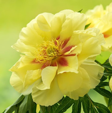 Подвійна півонія Bartzella має величезні подвійні жовті квіти. Ці міцні рослини стоять навіть після сильного дощу. Щоб квіти залишалися здоровими та стоячими, робити палки не потрібно.
